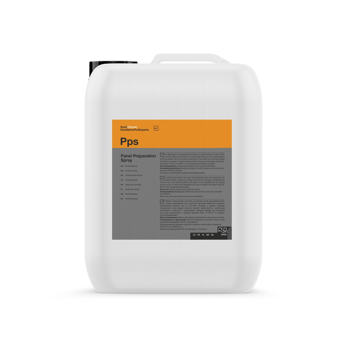 Sprej za pripremu ploča u spremniku od 5 l vrlo je učinkovit sprej za čišćenje i kontrolu na bazi alkohola koji pouzdano uklanja ulja, vosak i ostatke poliranja. Omogućuje brzu i temeljitu inspekciju boje na holograme i ogrebotine te optimalno priprema površinu za bojanje i brtvljenje (npr. C0.02 , 1K-Nano , W0.01 ). Zahvaljujući posebnim sastojcima, posebno je kompatibilan s materijalima i osigurava primjenu bez napora. Sprej ne sadrži halogenirane ugljikovodike i prikladan je za sve boje otporne na otapala, plastiku i metale.