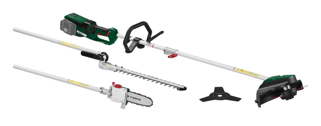 - 4 funkcije: trimer za travu/rezač grmlja/škare za živicu/škare