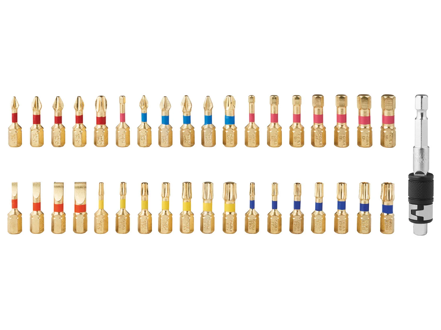 7 x Torx bitova: T10 – T15 – T20 – T25 – T27 – T30 – T40, boja prstena: žuta