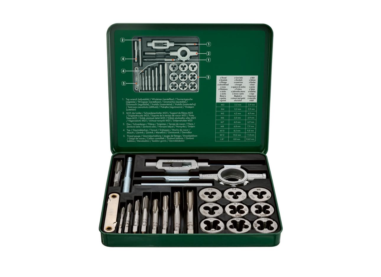 - 9 x matrica (M3/M4/M5/M6/M7/M8/M10/M12 i 1/8″)
